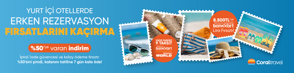 %50’ye Varan Erken Rezervasyon Fırsatları yurt içi otellerde 9 taksite ve 8.500 TL’ye varan Bankkart Lira avantajları ile başlamıştır.
